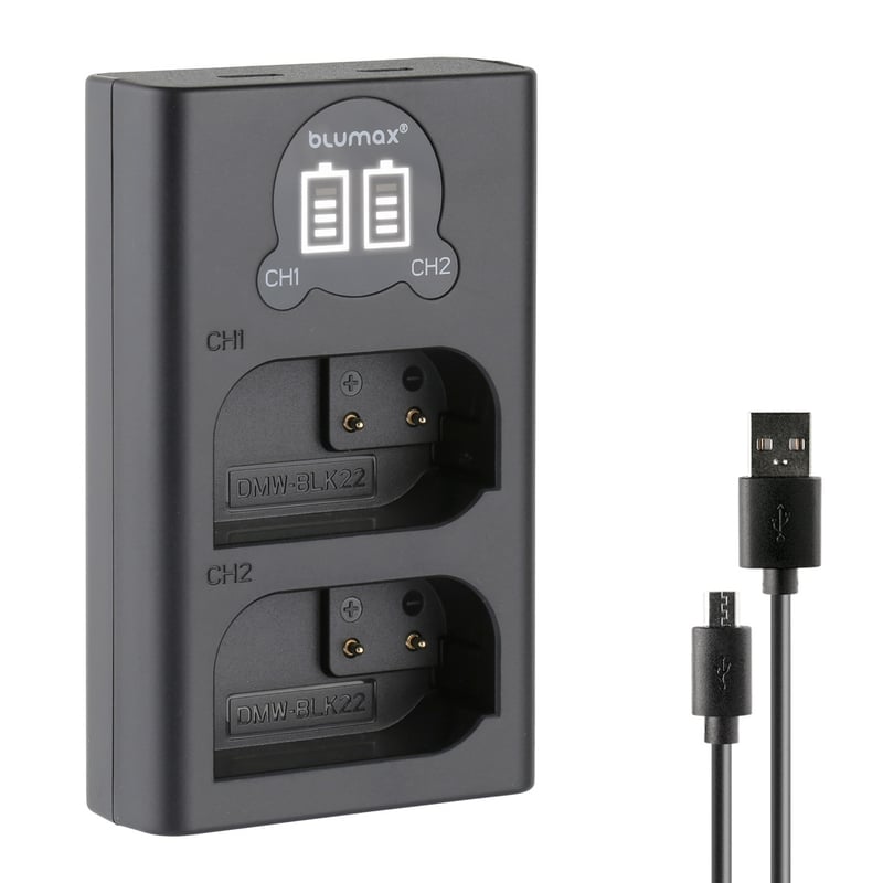 Зарядно за 2 батерии Panasonic DMW-BLK22 с LCD дисплей - 8.4V