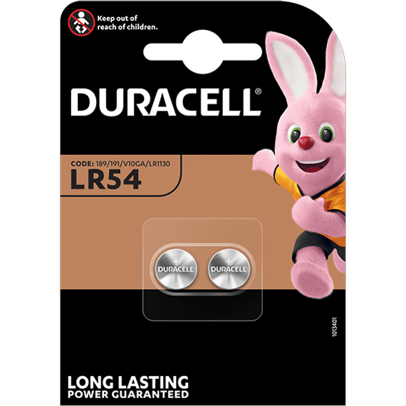 Алкални батерии LR54 - AG10 - LR1130 Duracell LR54 - 1.5V - 2 броя