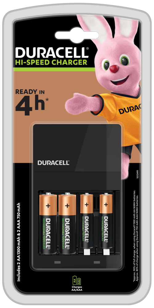 Зарядно за акумулаторни батерии DURACELL Hi-Speed с 2 x AA 1300 mAh и 2 x AAA 750 mAh ready in 4h
