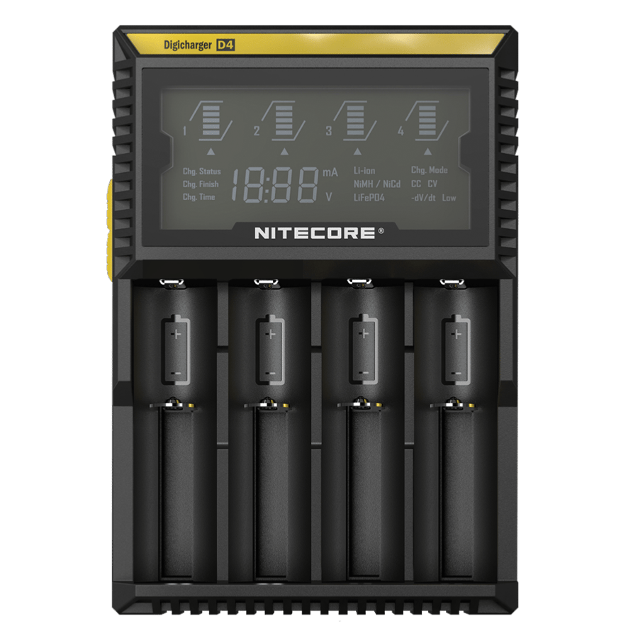 - Оптимизирано за батерии с малки капацитети - батеиите с малки капацитети (10440, 16340, АА) може лесно да прегреят, да съкратят продължителността за употреба или да причинят проблеми с безопасността, когато се зареждат с обикновени зарядни, поради прекомерния зареждащ ток. Заради този проблем, Nitecore представят програмата за зареждане на батерии с ниски капацитети, когато разработват зарядното D4.