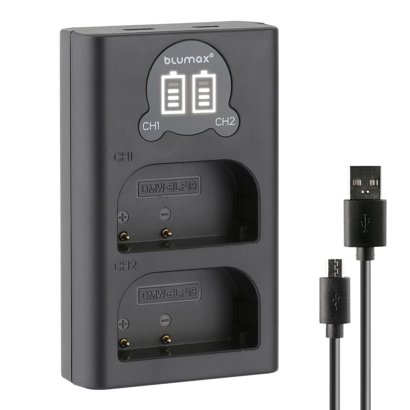 Зарядно за 2 батерии Panasonic DMW-BLF19 с LCD дисплей - 8.4V